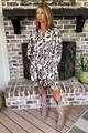 The Briar dress features a delicate floral print and a flattering 3/4 sleeve design, combining elegance with comfort. Its flared skirt enhances movement and silhouette, making it an ideal choice for both casual and semi-formal occasions.