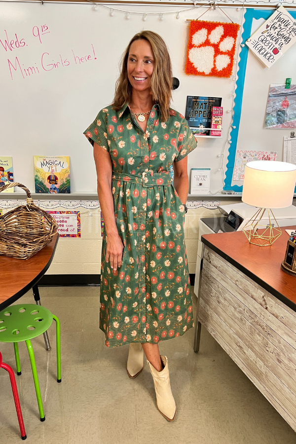 The Craig dress features a refined midi length with a classic shirt collar and short sleeves, adorned with a delicate flower print. Its tailored silhouette offers a polished yet comfortable fit, making it an ideal choice for both professional settings and elegant casual occasions.