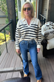 The Judy sweater features a classic collared design combined with a timeless striped knit pattern, offering both style and comfort. Crafted for durability and warmth, this sweater is ideal for layering in cooler weather while maintaining a polished, sophisticated look.
