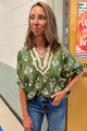 The Kendra top showcases an abstract botanical print with short dolman sleeves, offering a relaxed yet refined silhouette. Its caftan-inspired V-neck band with contrast accents adds a sophisticated focal point, enhancing both style and comfort.
