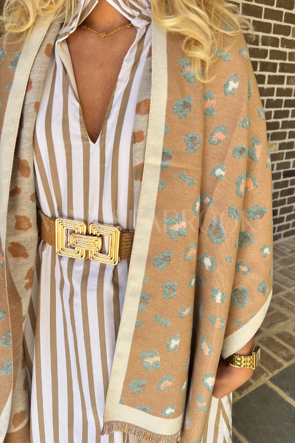 Wrap yourself in playful elegance with the Maybury scarf, boasting a chic leopard-inspired pattern that adds a splash of wild charm to any outfit. Its lightweight fabric and fringe edges make it perfect for layering or tying in creative ways, keeping you stylish without weighing you down.
