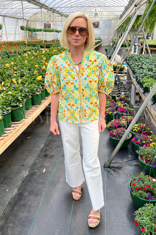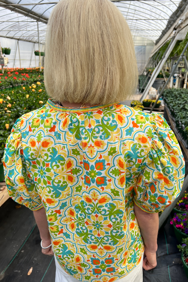 The Ballade top combines timeless elegance with modern design details. Its v-neckline flatters any frame, while voluminous balloon sleeves create an effortlessly chic silhouette. Shirring throughout the fabric adds visual interest and gentle texture, complemented by carefully placed stitching at the neckline and cuffs for a refined finish.