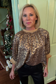 The Belmont top brings playful vibes with its round neckline highlighted by a contrasting elastic band. Raglan puff sleeves give a fun, flirty silhouette, while ribbed ruffle knit cuffs add charming detail. Made from shimmering metallic animal print woven fabric, this top lets you shine with bold, confident style.