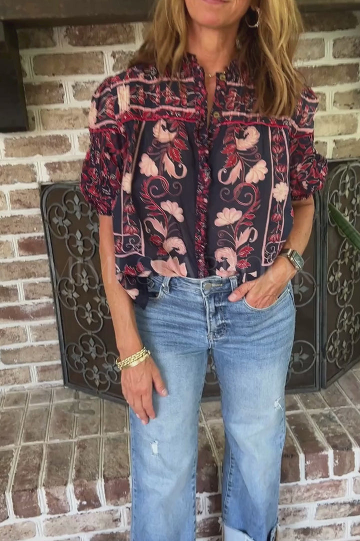 Elevate your wardrobe with the Boho Floral Scarf Blouse by Farm Rio. This expertly crafted blouse features a delicate floral pattern and a versatile scarf detail that adds a refined touch to any outfit. Designed for comfort and style, it effortlessly blends bohemian charm with sophisticated elegance, making it an ideal choice for both casual and dressier occasions.