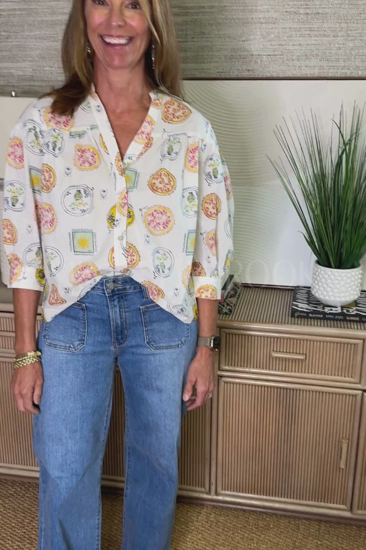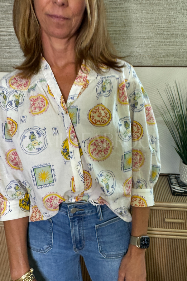 The Cannon top features a refined V-neck design and three-quarter sleeves, combining style with comfort. Crafted from breathable cotton, it offers a soft, natural feel ideal for all-day wear. The button-down front and buttoned cuffs add a tailored touch, making this top versatile for both professional and casual settings.