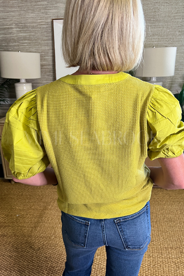 The Clearwater top brings a fun twist to your everyday wardrobe with its pintuck puff sleeves and textured knit fabric. Designed for comfort and style, this playful piece adds a touch of whimsy to any outfit, making it perfect for casual days or lively gatherings. Embrace the charming details that set this top apart and let your personality shine through!