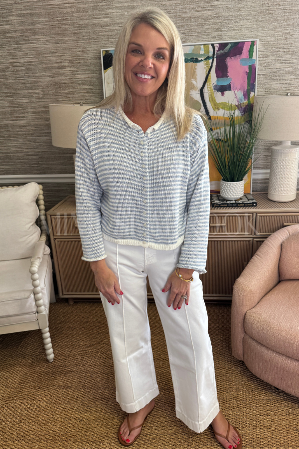 The Cyrus sweater combines classic style with everyday comfort. This striped knit features a button-down front for easy layering and versatile styling. The soft, breathable fabric works perfectly for casual weekends or dressed-up occasions. A timeless piece that transitions seamlessly through any season.