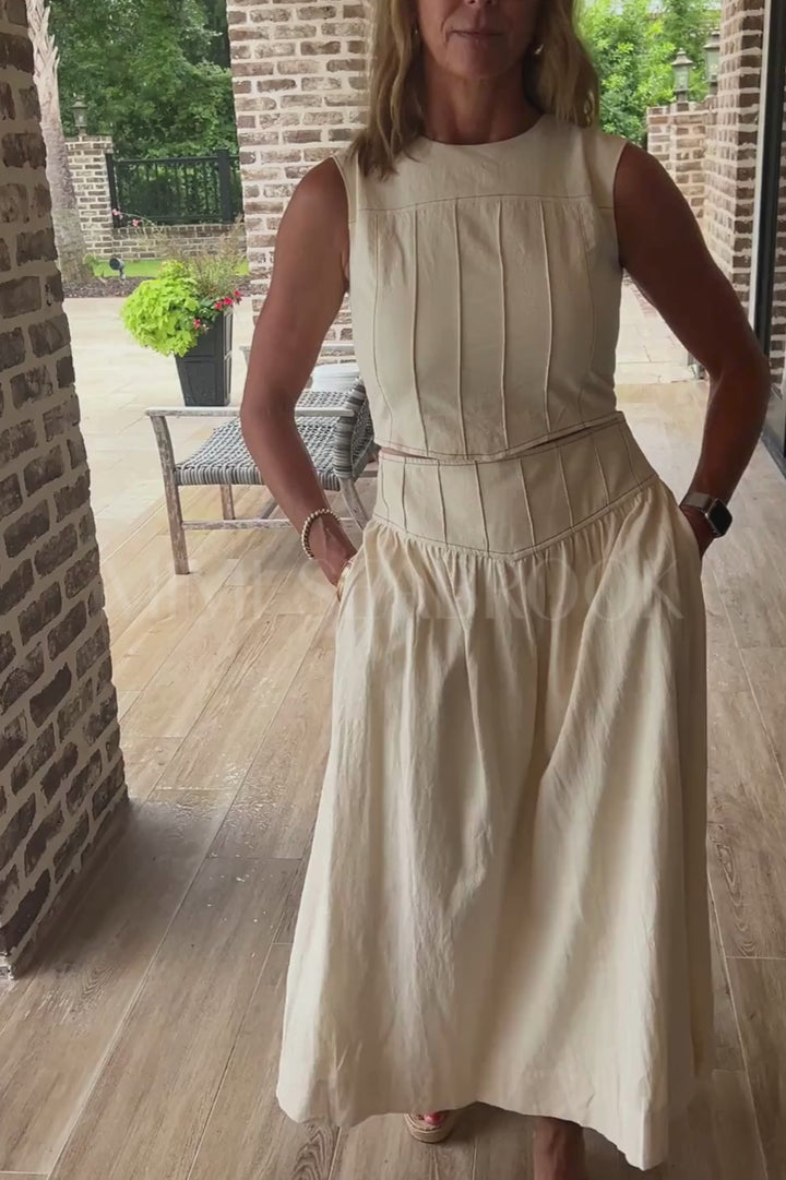 This expert-crafted Gainer top features a textured sleeveless design with contrast vertical stitching that enhances its tailored silhouette. The round neckline and curved hem provide a refined finish, while the smocked back panel ensures a comfortable, flexible fit. An exposed back zipper adds a modern edge, making this cotton top both stylish and functional for versatile wear.