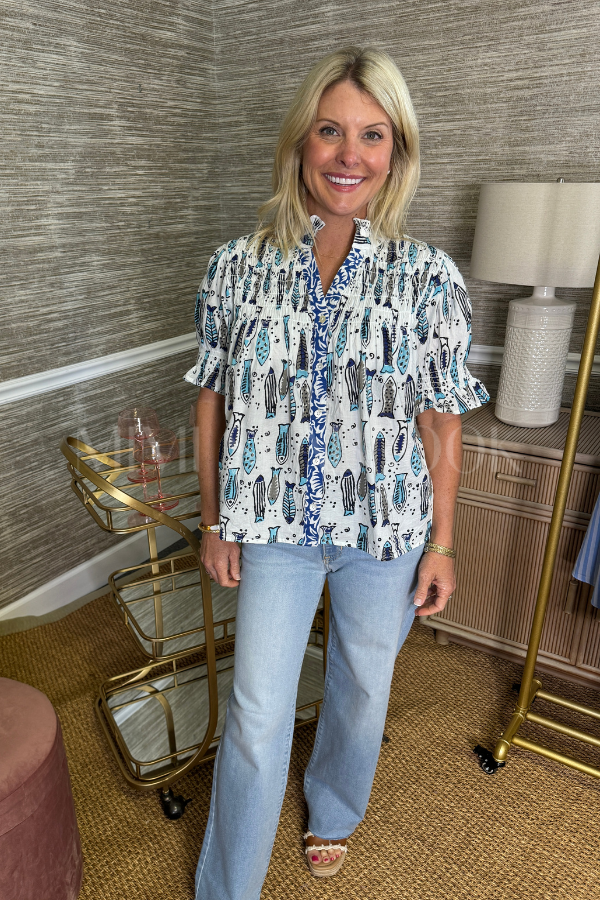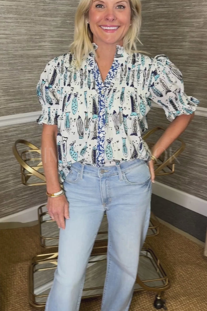 The Grafton top is a vibrant and sophisticated addition to any wardrobe. Its colorful design adds a touch of whimsy, while its classy cut exudes elegance.