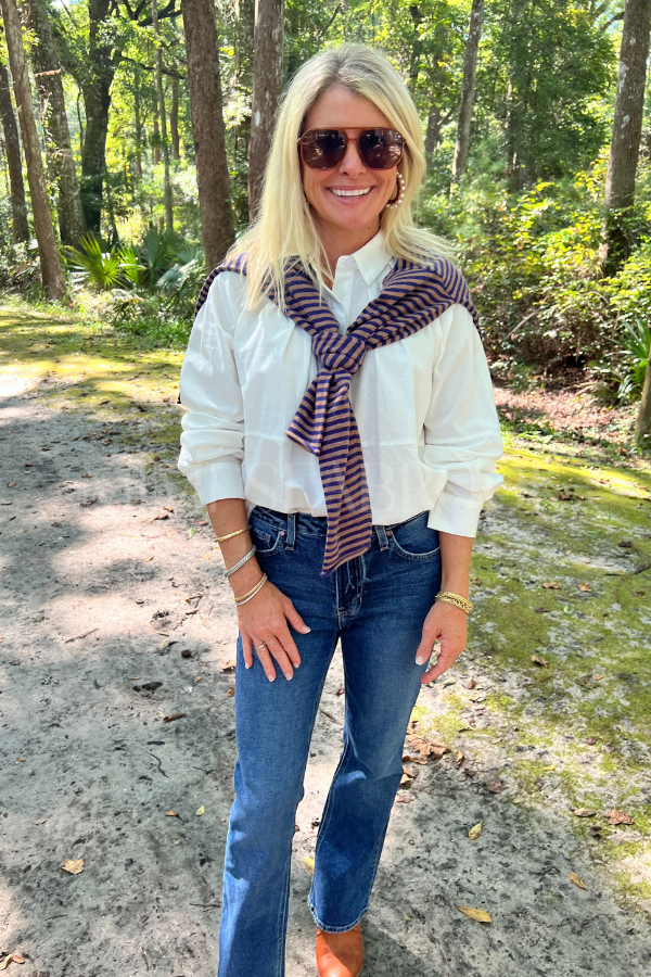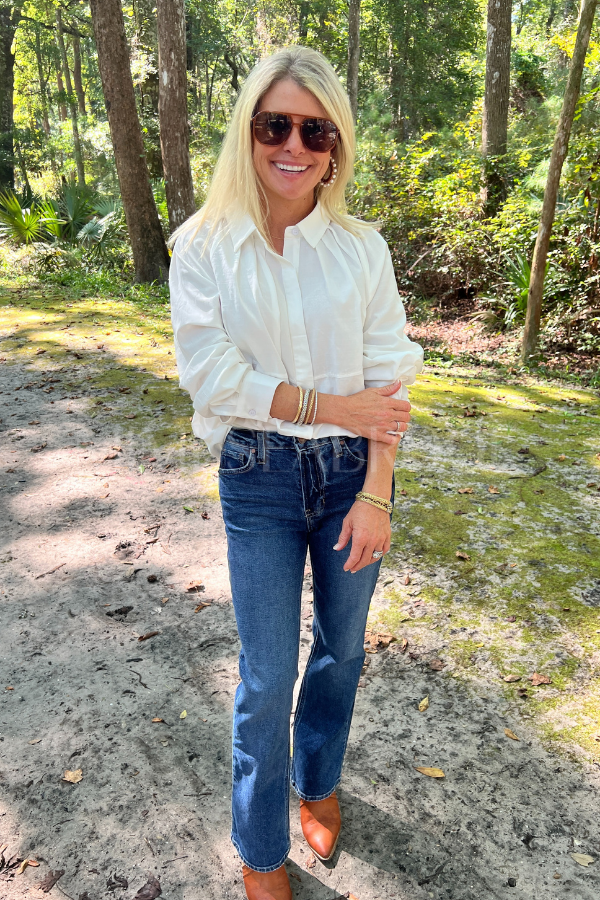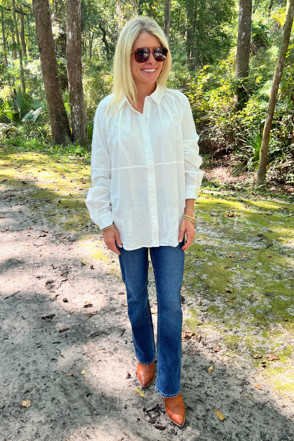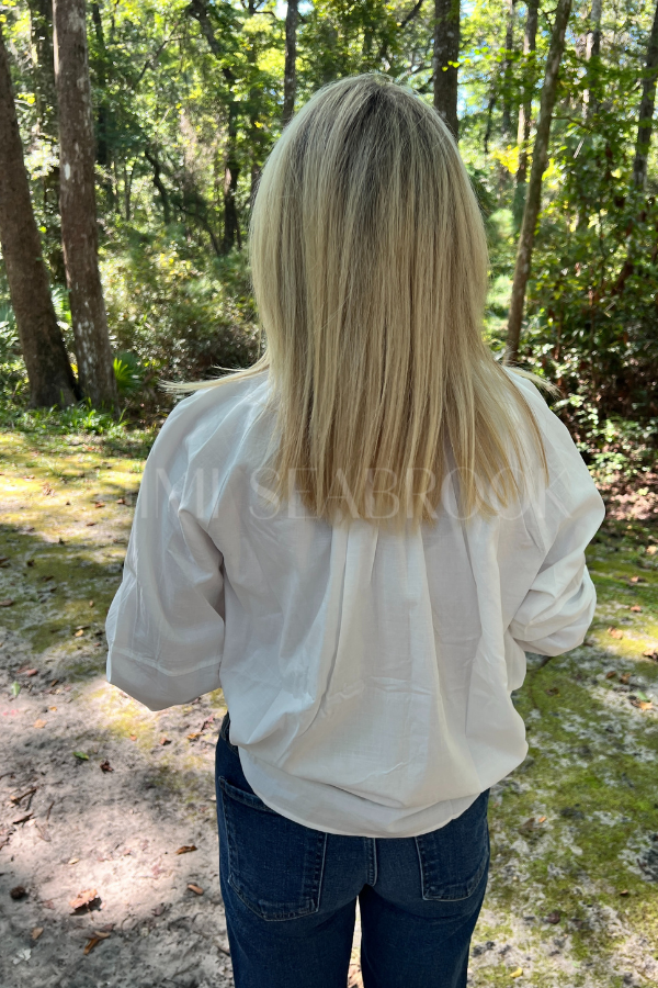The Hagaman top features a sleek hidden placket for a clean, modern look. Crafted from soft cotton, it promises comfort and breathability all day long. Perfect for adding a playful twist to your everyday wardrobe with its understated yet stylish design.