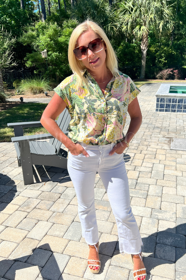 Expertly crafted with a collared design and convenient button down closure, the Irving top offers a stylish addition to any wardrobe. The sleek design adds a touch of sophistication to any outfit.