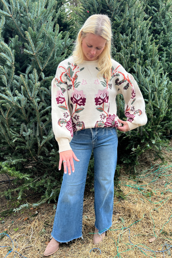 Meet the Judi Sweater—your new favorite way to add a splash of botanical charm to your closet! This delightful piece showcases a vibrant floral print that brings nature's beauty straight to your everyday style. Whether you're heading to brunch, running errands, or cozying up at home, the Judi wraps you in softness while keeping things fresh and fun.
