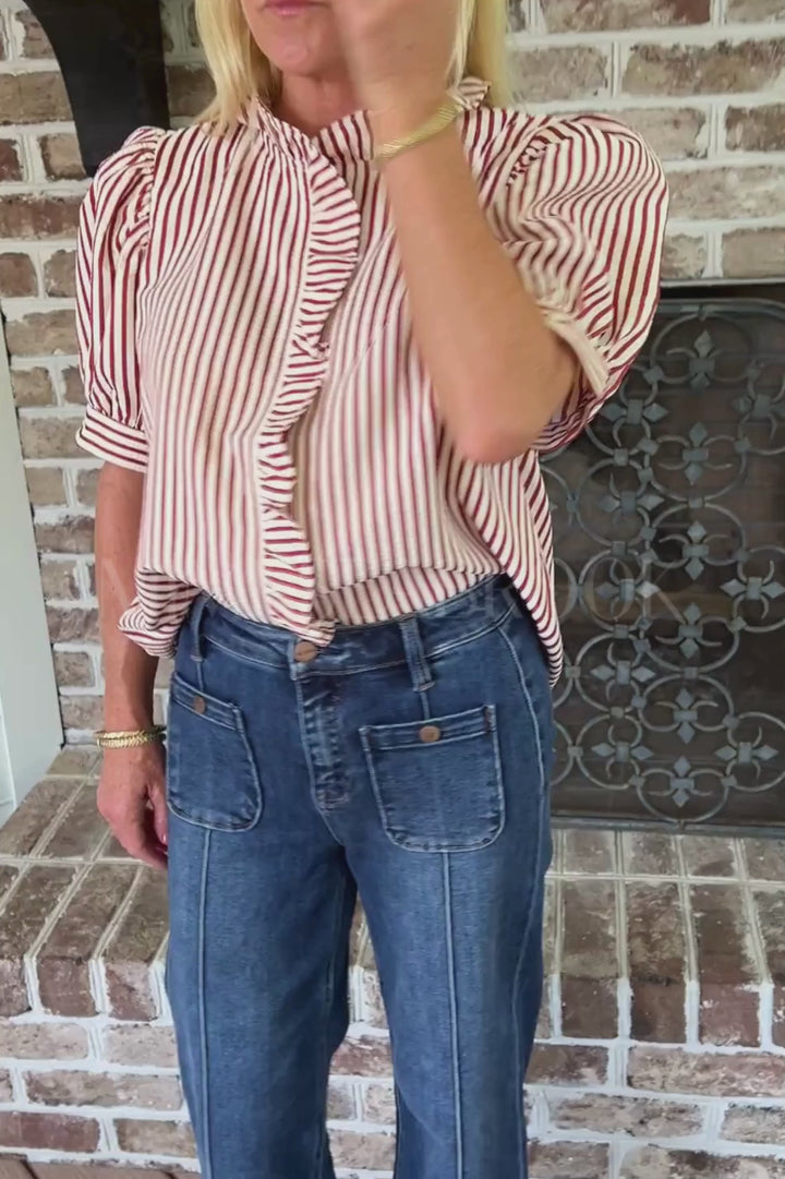 Elevate your wardrobe with the Kelsay top, featuring a refined striped pattern that adds subtle sophistication. Crafted for a polished look, this top pairs effortlessly with tailored pieces or sleek denim, making it a versatile choice for both professional and elegant casual settings. Its timeless design ensures lasting style with a touch of class.
