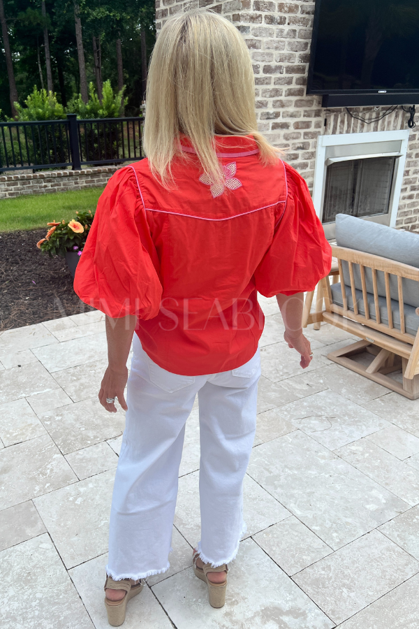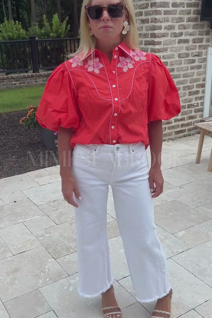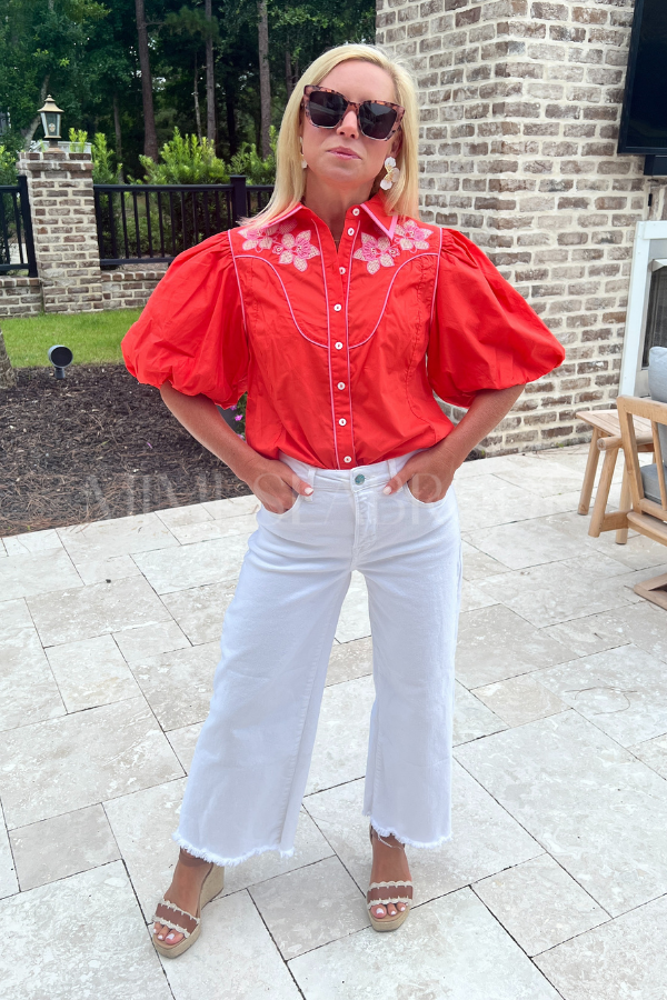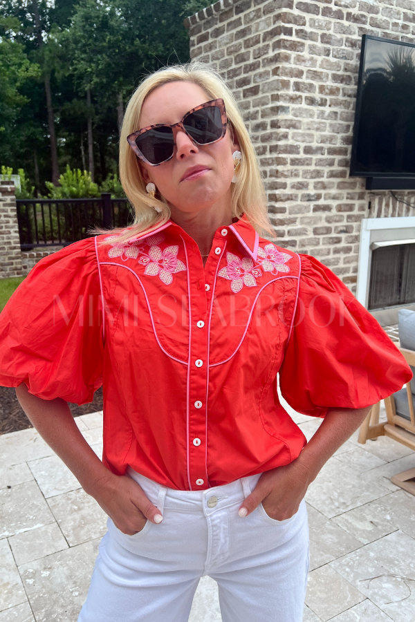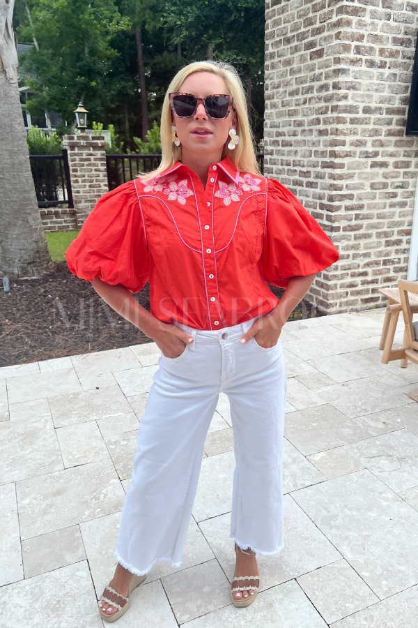 The Martenne Top features elegant puff sleeves and delicate floral embroidery, combining classic charm with modern sophistication. Crafted to enhance your silhouette, this top offers a refined look suitable for both casual and dressier occasions. Its intricate detailing adds a touch of artistry, making it a versatile addition to any wardrobe.