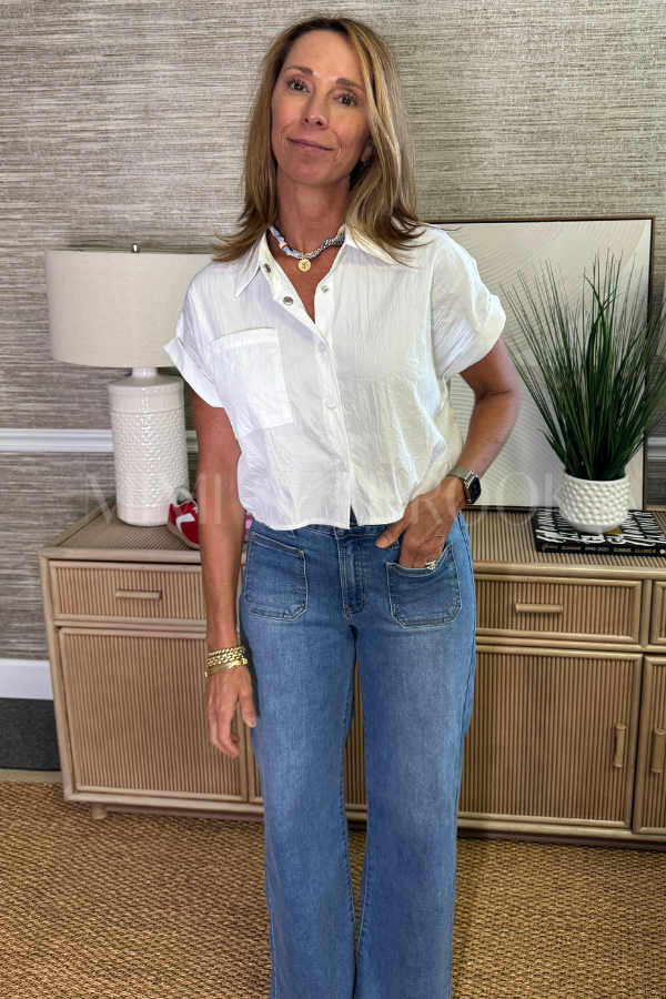The Nelly top features expertly crafted rolled sleeves and a cropped silhouette, offering a modern and polished look. Designed for versatility, it pairs effortlessly with high-waisted bottoms, making it ideal for both casual and refined outfits. Its tailored fit ensures comfort without compromising style, perfect for those seeking a contemporary wardrobe staple.
