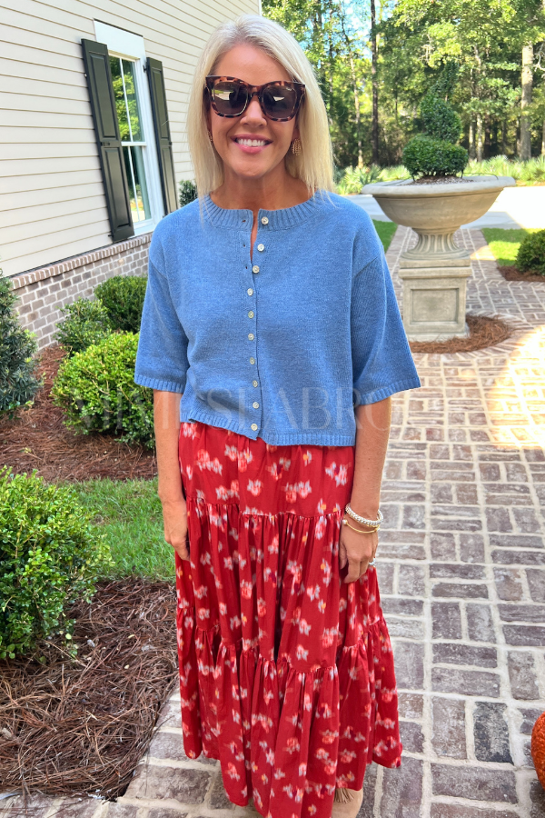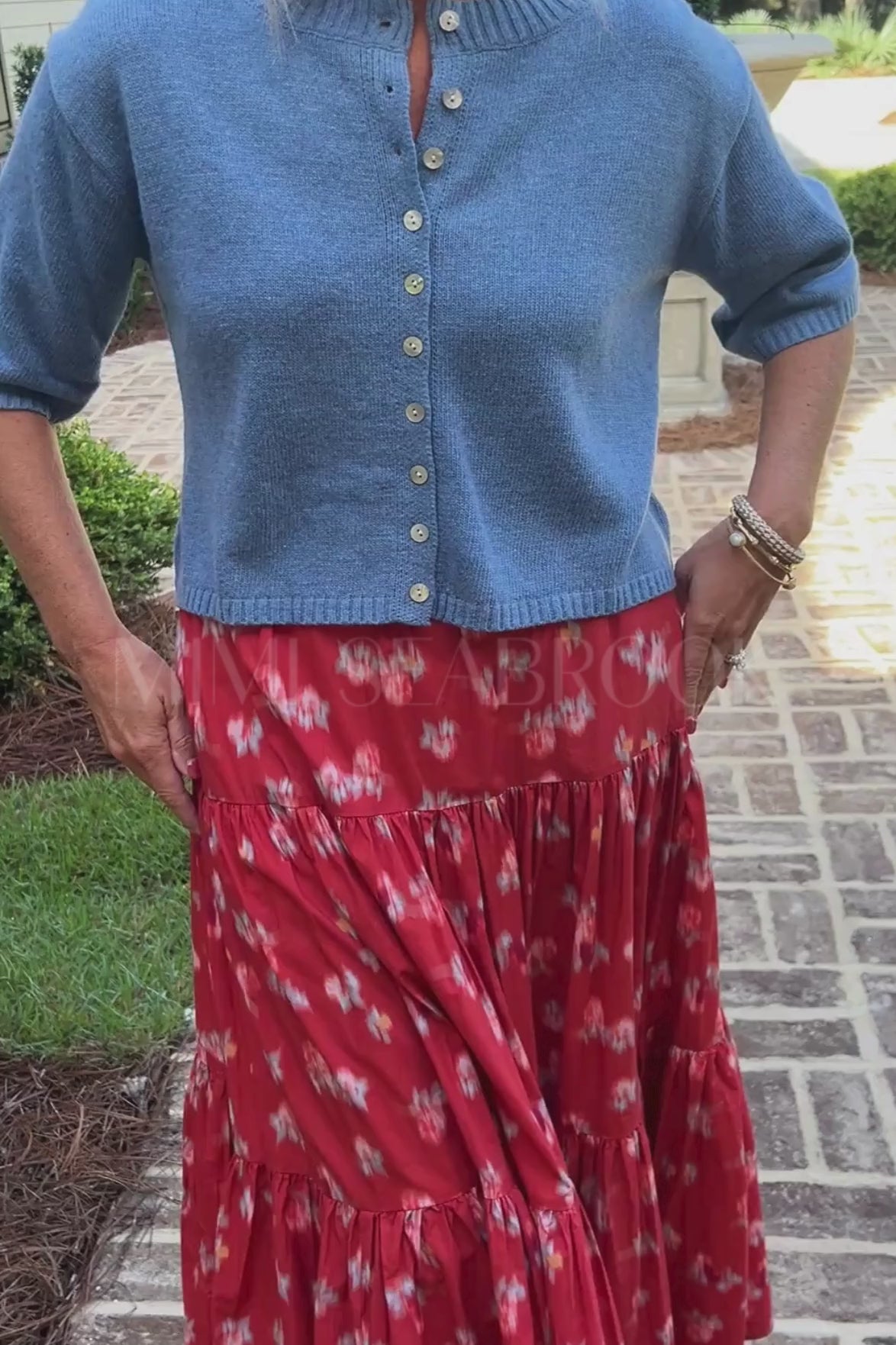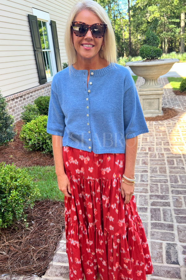 The Paramount sweater is your new go-to for easy layering. This lightweight, half-sleeve cardigan flaunts a relaxed fit that's perfect over your favorite tops and tanks. With a wide neck and charming shell button closure, it adds a splash of fun to any outfit. Finished with cozy ribbed trim, it’s playful yet effortlessly chic—just what your wardrobe needs!