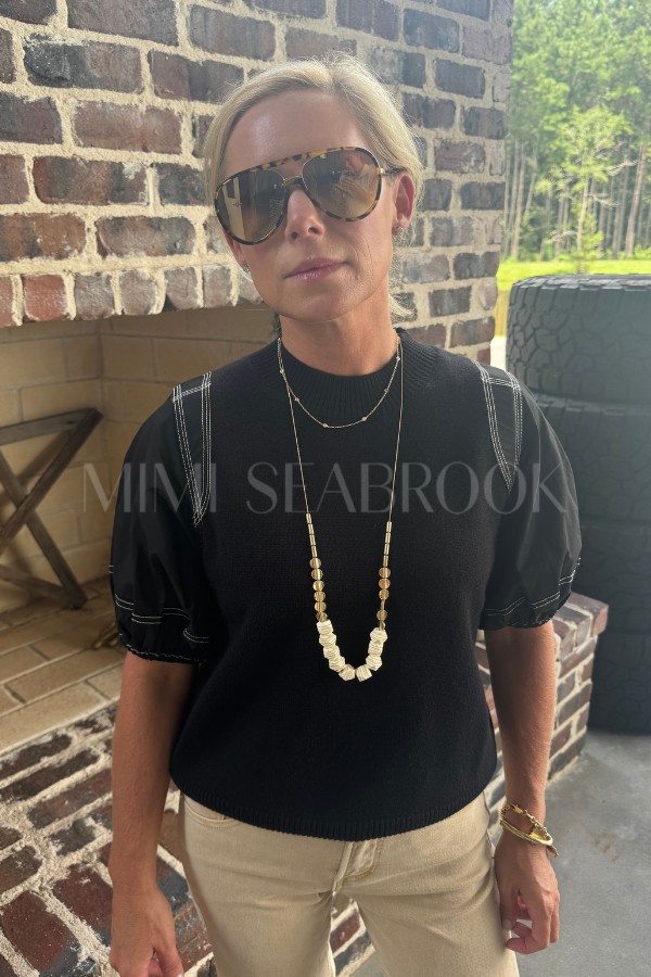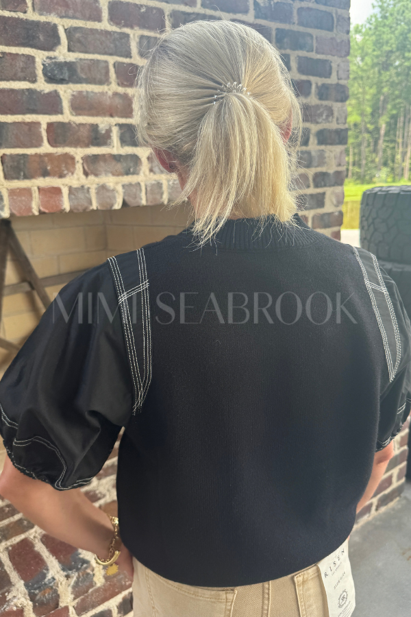 The Rhona sweater top features a refined poplin puff sleeve design that adds a sophisticated silhouette to your wardrobe. Crafted with a knit body for comfort and flexibility, this top balances structure and softness, making it ideal for both professional settings and stylish casual wear.