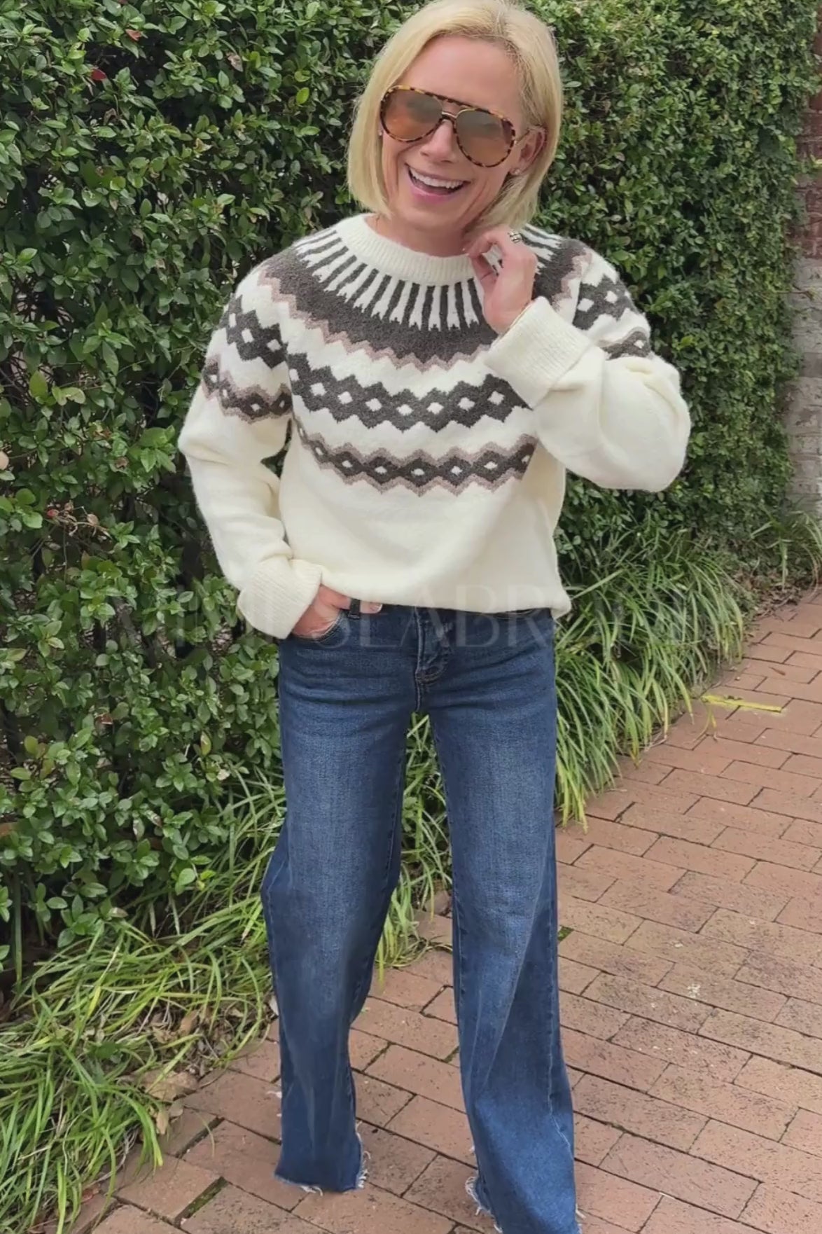 Step into cozy cool with the Ripley sweater! Featuring a vintage geometric pattern, this long-sleeve crew neck adds a dash of retro charm to your everyday look. Perfect for layering or rocking solo, it’s your new go-to for playful style and comfy vibes all season long.