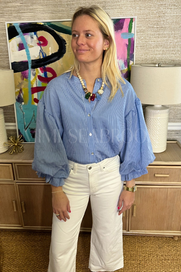 The Russette top is your new go-to for effortless style. This playful button-down features classic striping that works as hard as you do—dress it up for the office or down for weekend adventures. Soft, breathable fabric keeps you comfortable all day long, while the timeless design means you'll reach for it again and again.