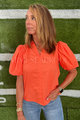 The Sasson top features a refined basic collar and a flattering V-neckline that enhances your silhouette. Its distinctive bubble sleeves add a modern, stylish touch while maintaining comfort and ease of movement.