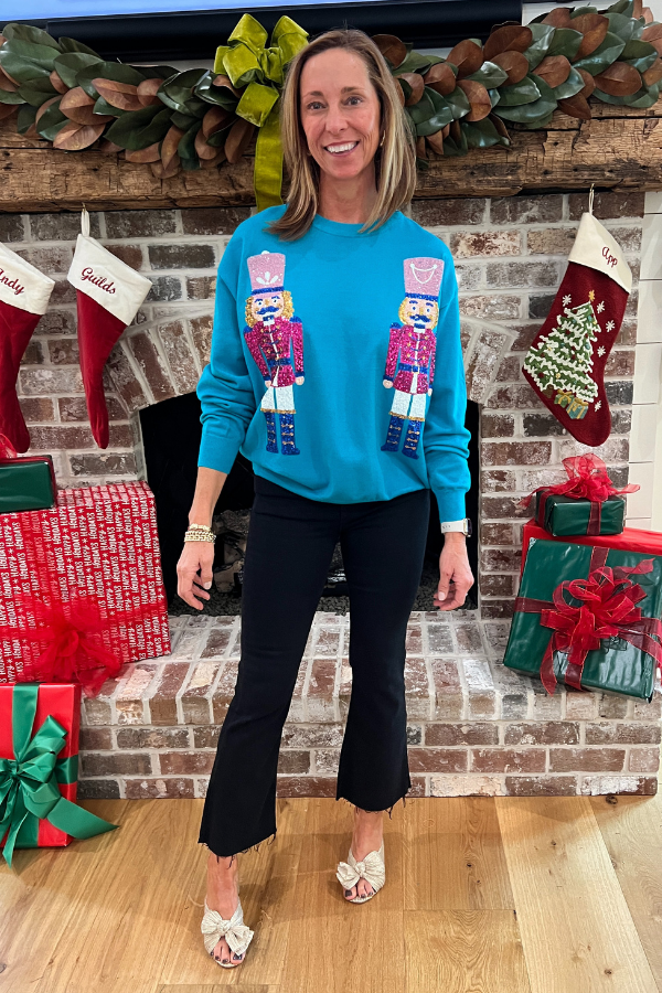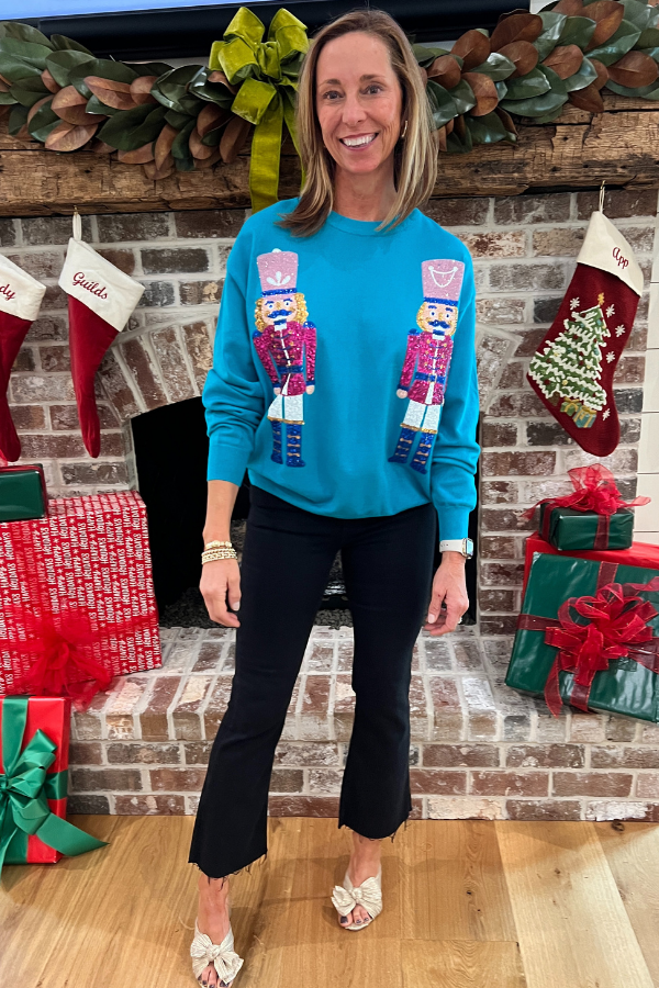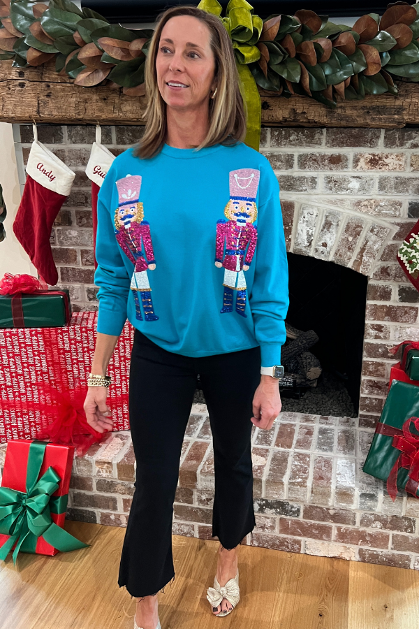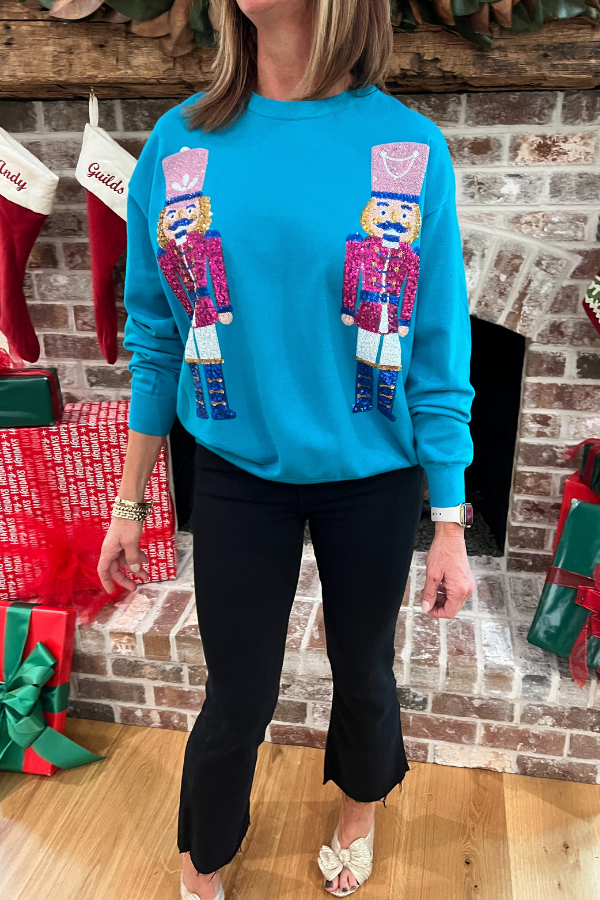 This Sequin Nutcracker Sweatshirt Top features a round neckline, long sleeves, and ribbed hem for a loose fit. With a blend of comfort and style, this top is perfect for a chic festive look.