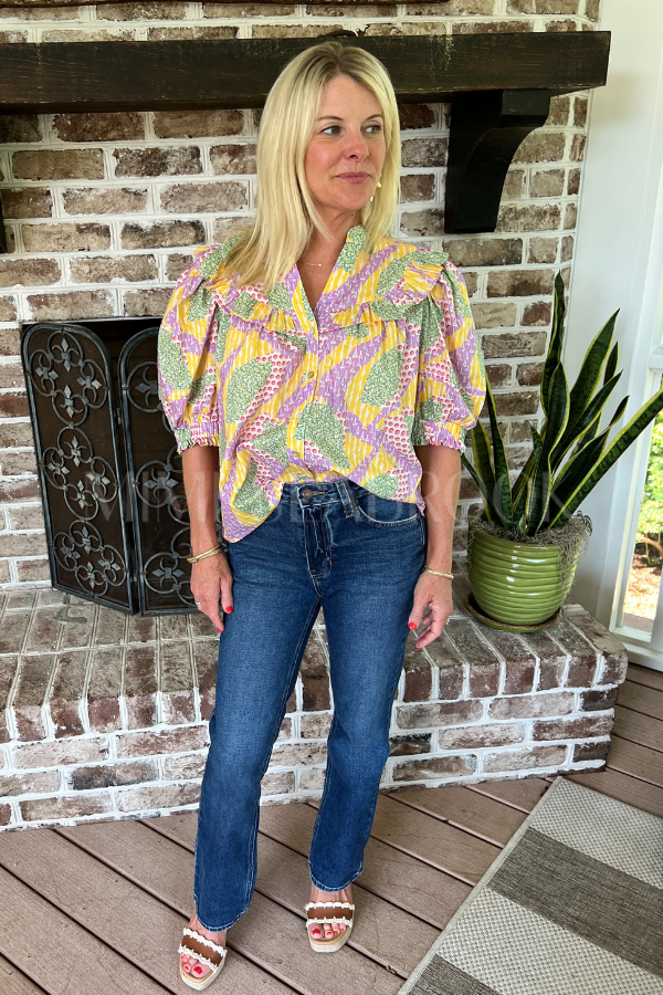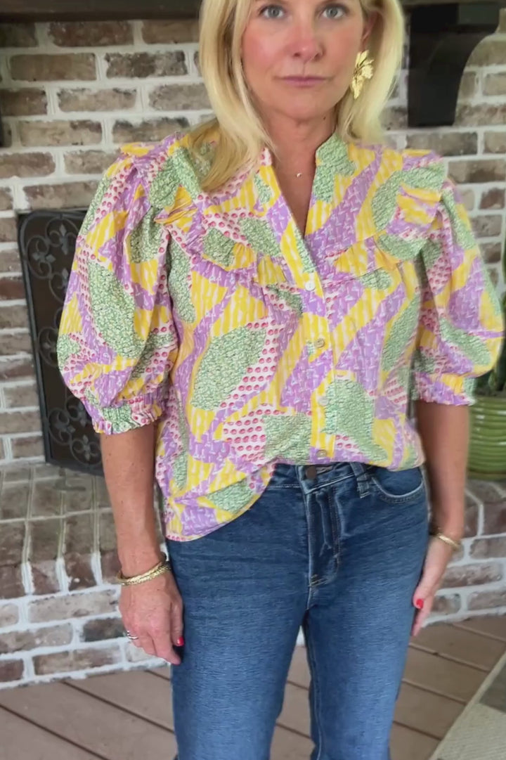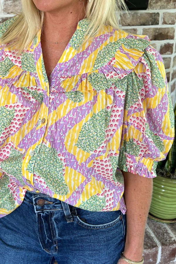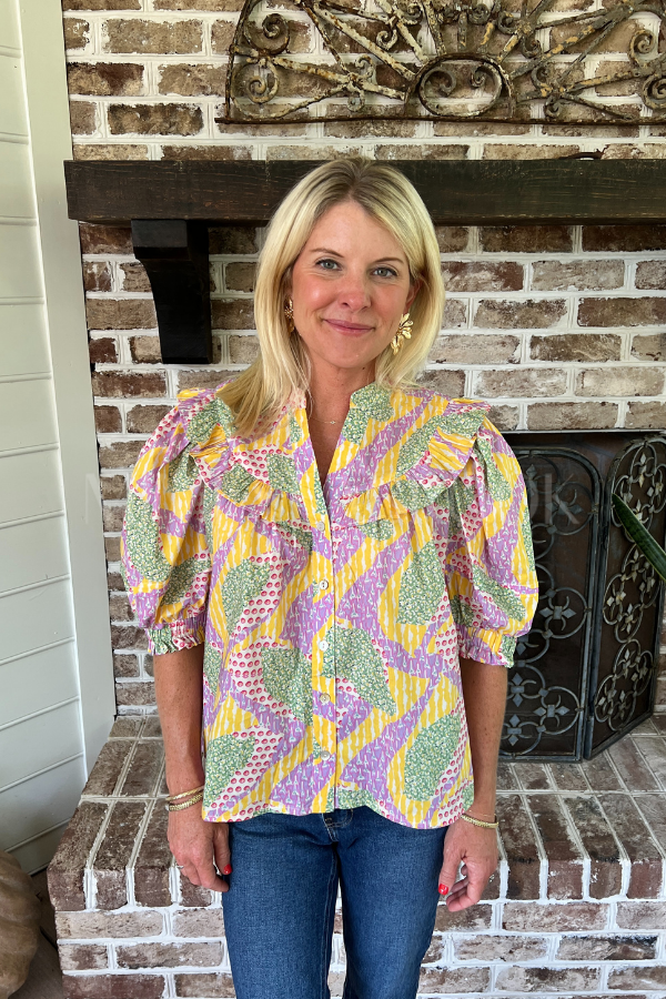 The Torry Top is a vibrant button-down shirt designed to bring a splash of color to your wardrobe. Expertly crafted for a polished yet lively look, it combines classic tailoring with bold hues, making it ideal for both professional settings and casual outings.
