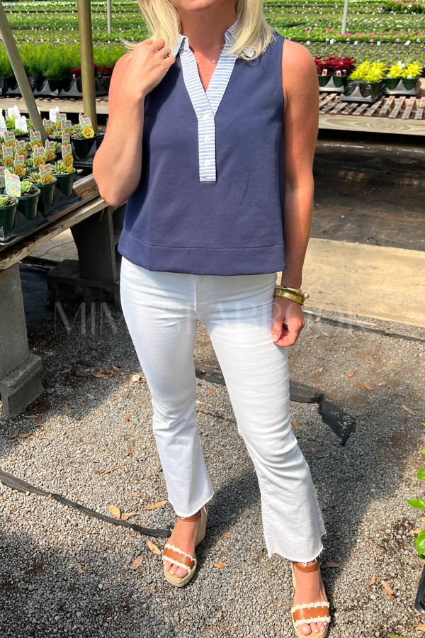 The Welsh top is both stylish and practical, with its sleeveless design and collared neckline. Stay cool all day long in this versatile piece, perfect for any occasion.