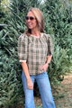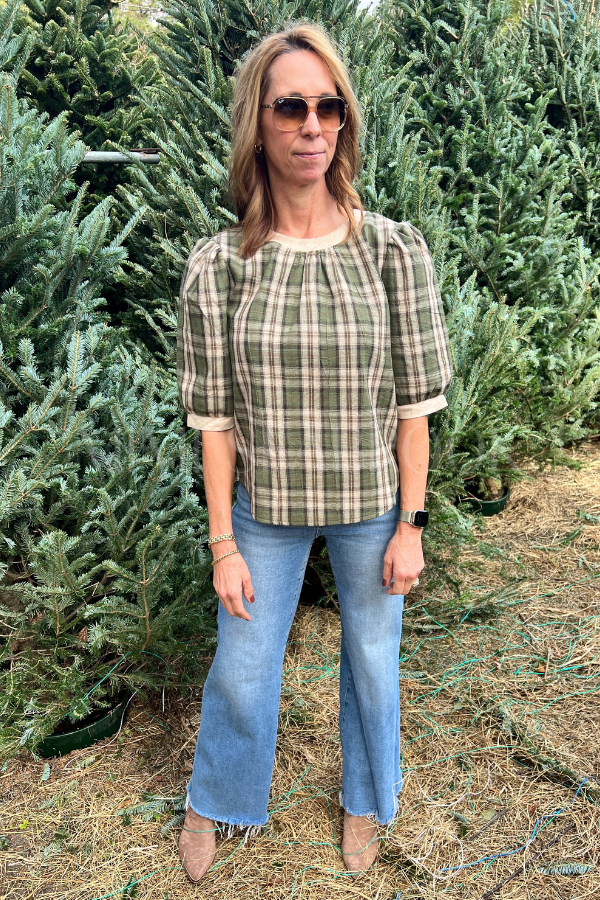 The Woodshire top brings timeless charm with its classic plaid woven fabric and refined details. Featuring a flattering round neckline and half puff sleeves for a touch of elegance, this piece offers both style and comfort. Luxe suede accents at the neck and cuffs elevate the look, while the convenient button and loop closure makes dressing effortless.