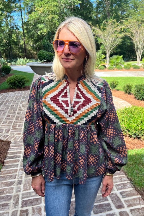 Ainika Pineapple Ikat Blouse by Farm Rio