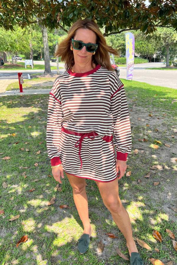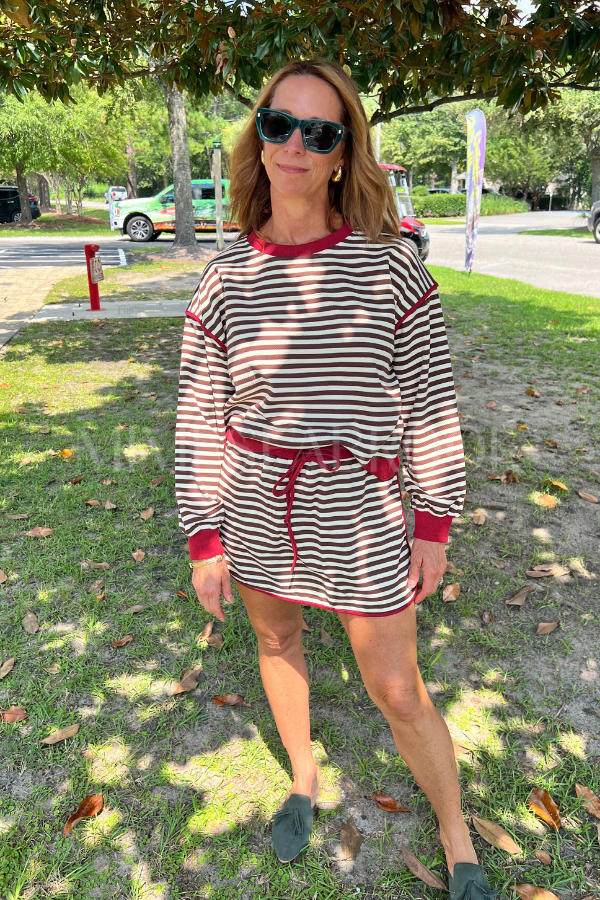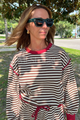 Add a splash of fun to your wardrobe with the Alianna top! This long sleeve pullover features a lively stripe pattern and a playful contrast accent band that brings a fresh twist to your everyday look. Perfect for layering or wearing solo, it’s comfy and stylish for any casual adventure.