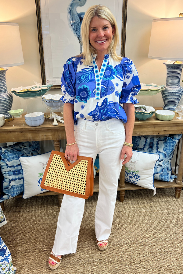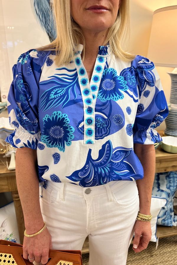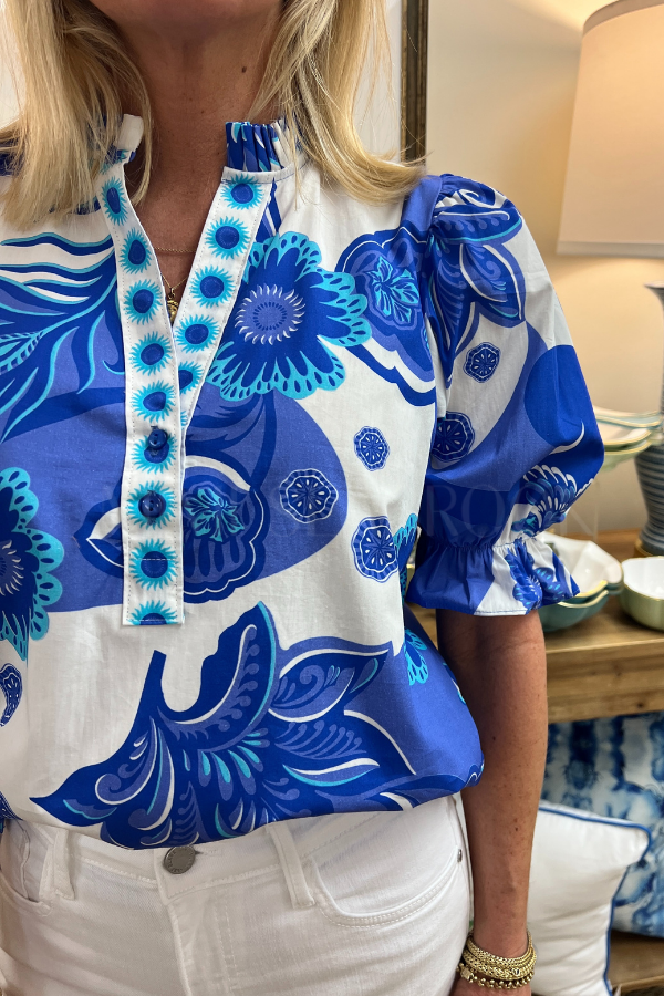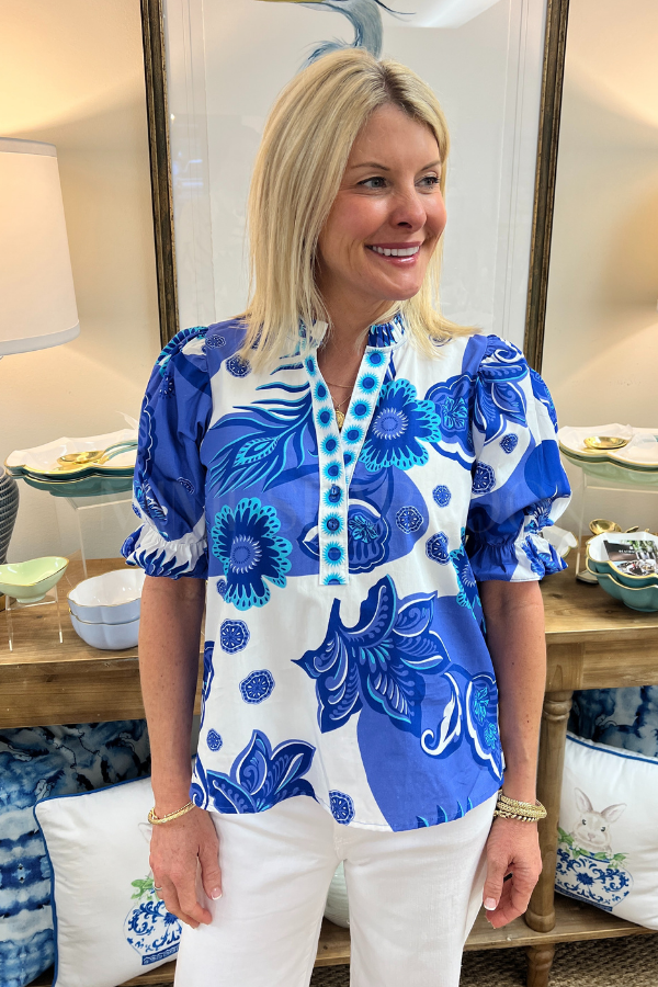Introducing the Amy Top, perfect for spring. Stand out in style with the bold outline palm print, adding a playful touch to any outfit. Made with high-quality materials for long-lasting wear. Elevate your wardrobe with this must-have piece.