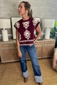 The Annandale top features a refined damask pattern woven into a sweater-knit fabric, offering both texture and subtle elegance. Designed as a muscle tee pullover, it combines a structured silhouette with comfortable stretch, making it ideal for layering or standalone wear.