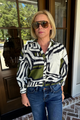 The Aubie top brings a playful twist to your wardrobe with its lively abstract print and a chic collared neckline. Perfect for mixing and matching, this top adds a splash of fun to your everyday style while keeping things effortlessly cool and comfortable.