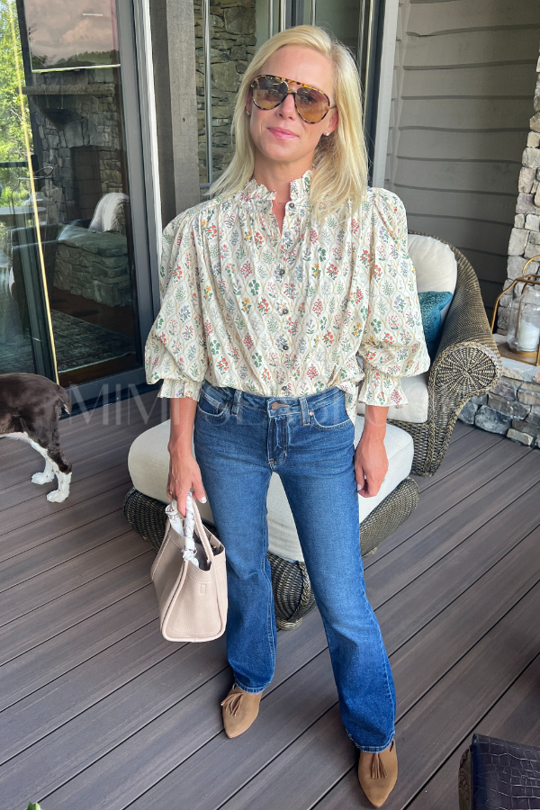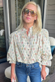 The Aviana top brings a playful touch to your wardrobe with its vibrant multi-floral print and charming puff sleeves. Crafted from soft cotton, it features a delicate ruffle band collar and matching ruffle sleeve finishes, adding a flirty, feminine flair. Perfect for brightening up any day with comfort and style.