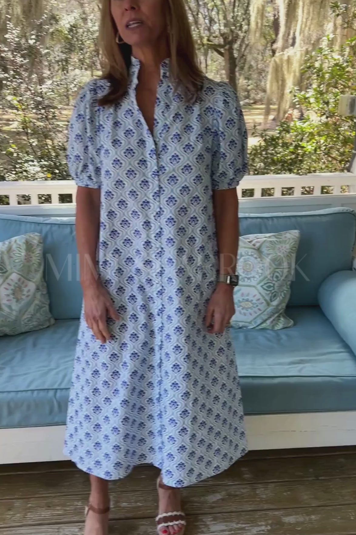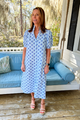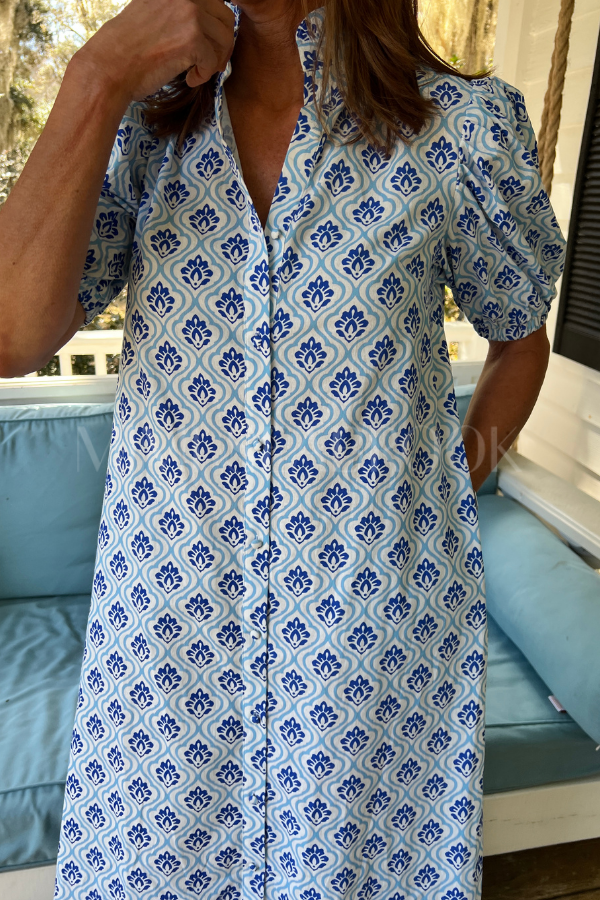 Make a statement in the Banberry dress, where vibrant cobalt and white prints meet effortless charm. This cotton midi features a ruffled collar that adds a flirty touch and elastic-banded arms for comfortable movement. Perfect for turning heads at brunch, garden parties, or whenever you want to feel like the most fun person in the room. Dress it up with heels or keep it casual with sneakers—this playful piece does it all.