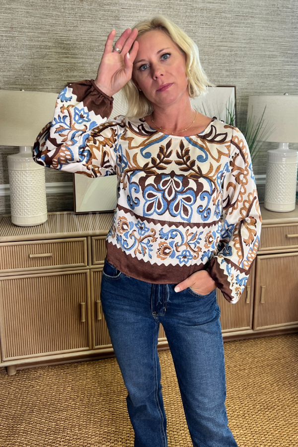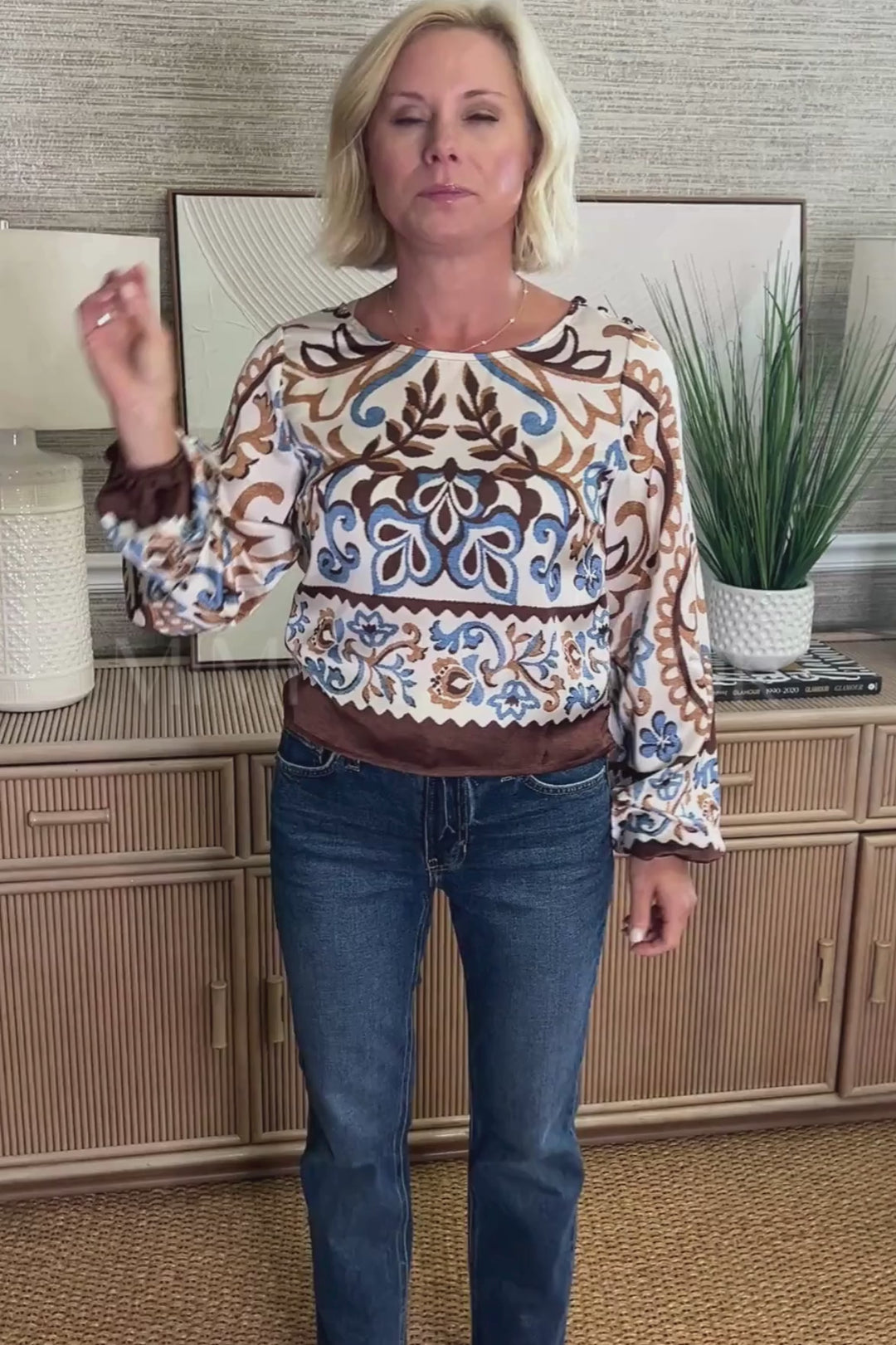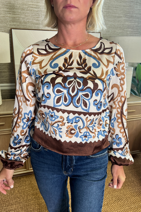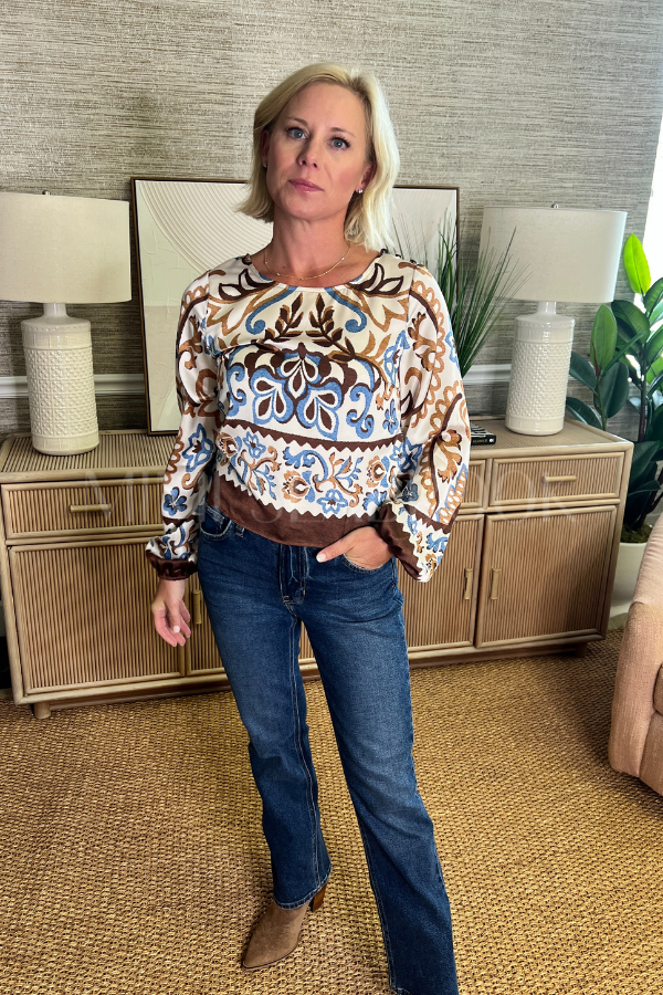The Beglin top features a distinctive border print that adds a refined touch to your wardrobe. Crafted with attention to detail, this blouse offers a flattering fit and versatile style suitable for both professional and casual settings.