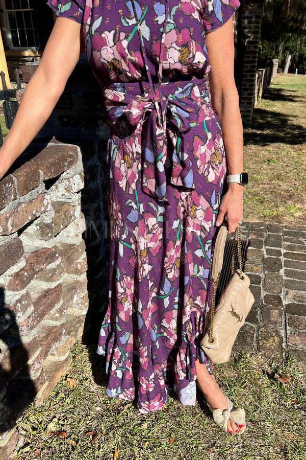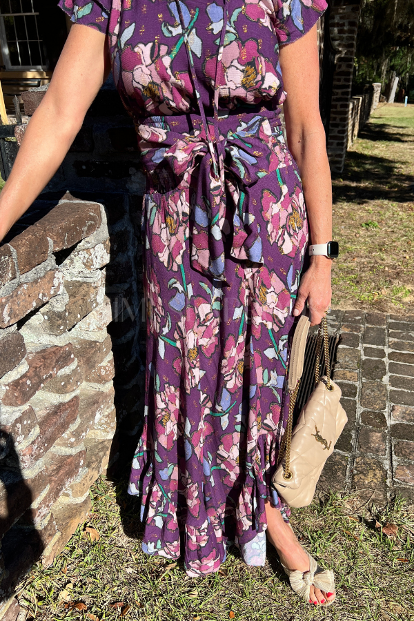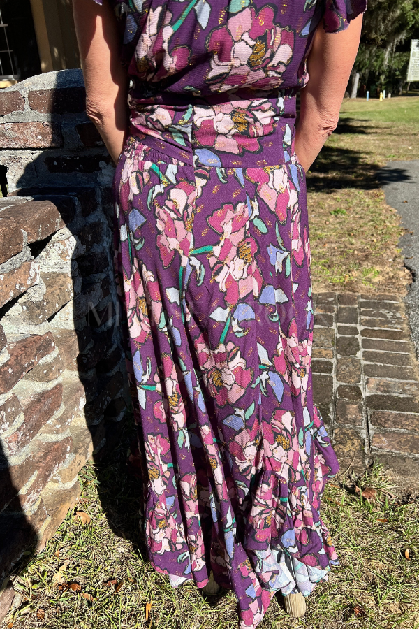 Discover effortless elegance with the Dalia floral skirt. Its bright colors and full length design make it perfect for any occasion.