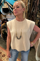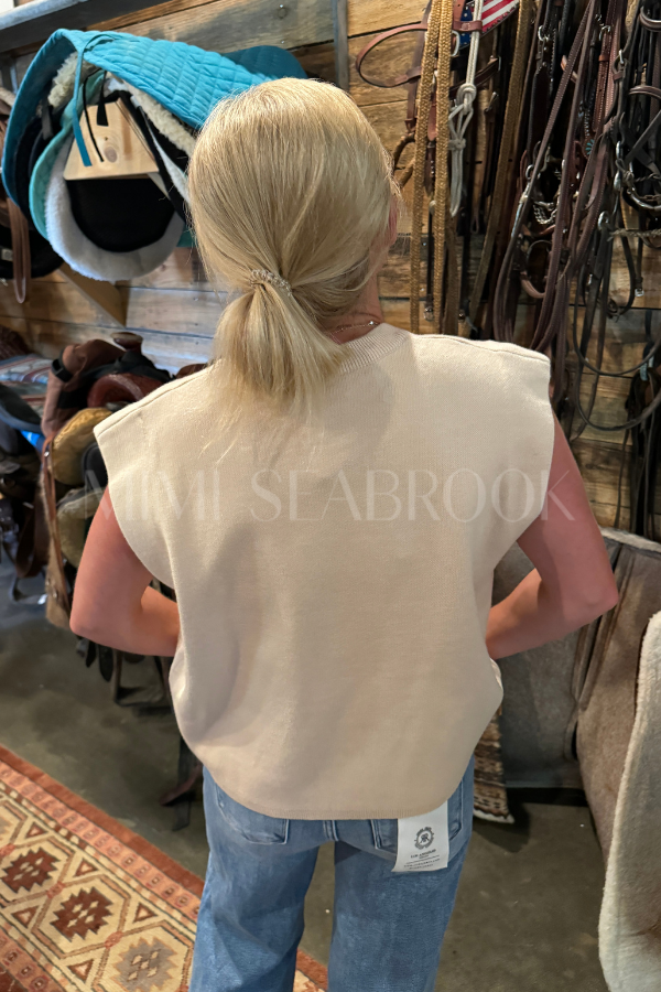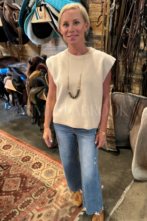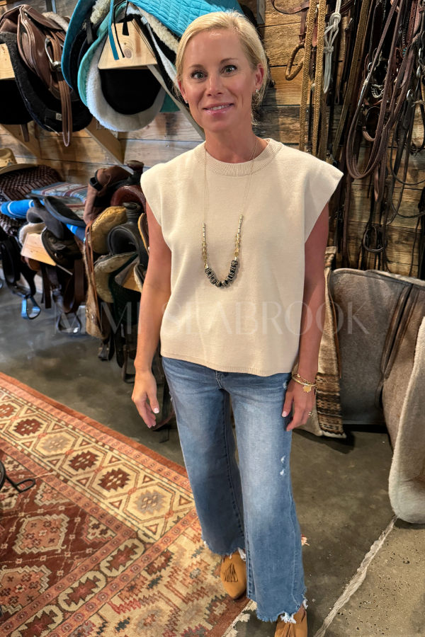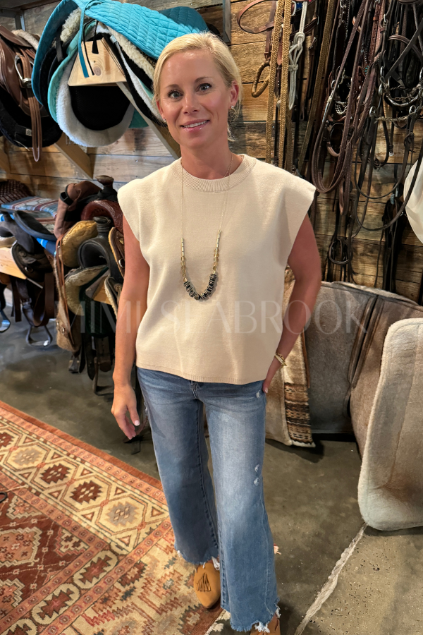 This Ember top in ecru combines the cozy charm of a solid crewneck sweater with the cool edge of a knit muscle tee. Perfect for layering or wearing solo, it adds a playful twist to your casual wardrobe with its soft texture and flattering fit. Get ready to turn heads while staying comfy all day long!