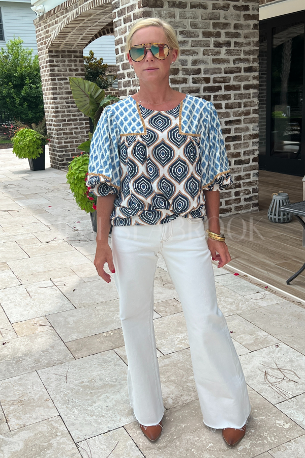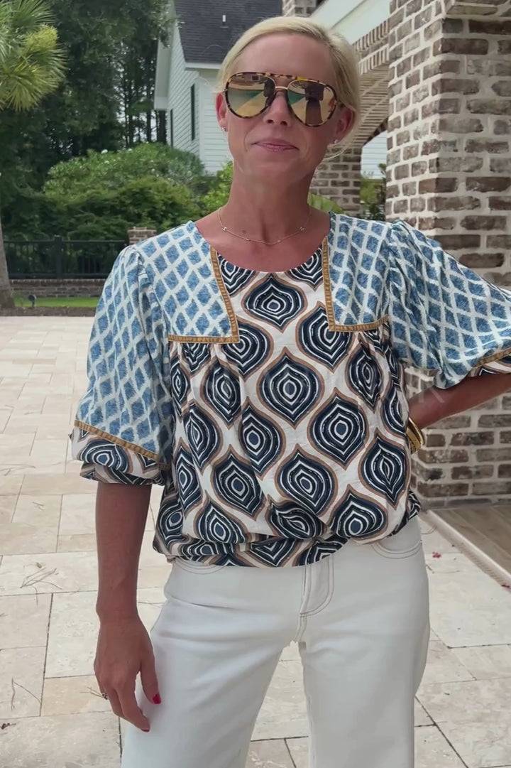 The Hammond Top features a sophisticated abstract print that adds a modern artistic touch to your wardrobe. Crafted with attention to detail, this top combines contemporary design with versatile wearability, making it an excellent choice for those seeking a refined yet expressive style.