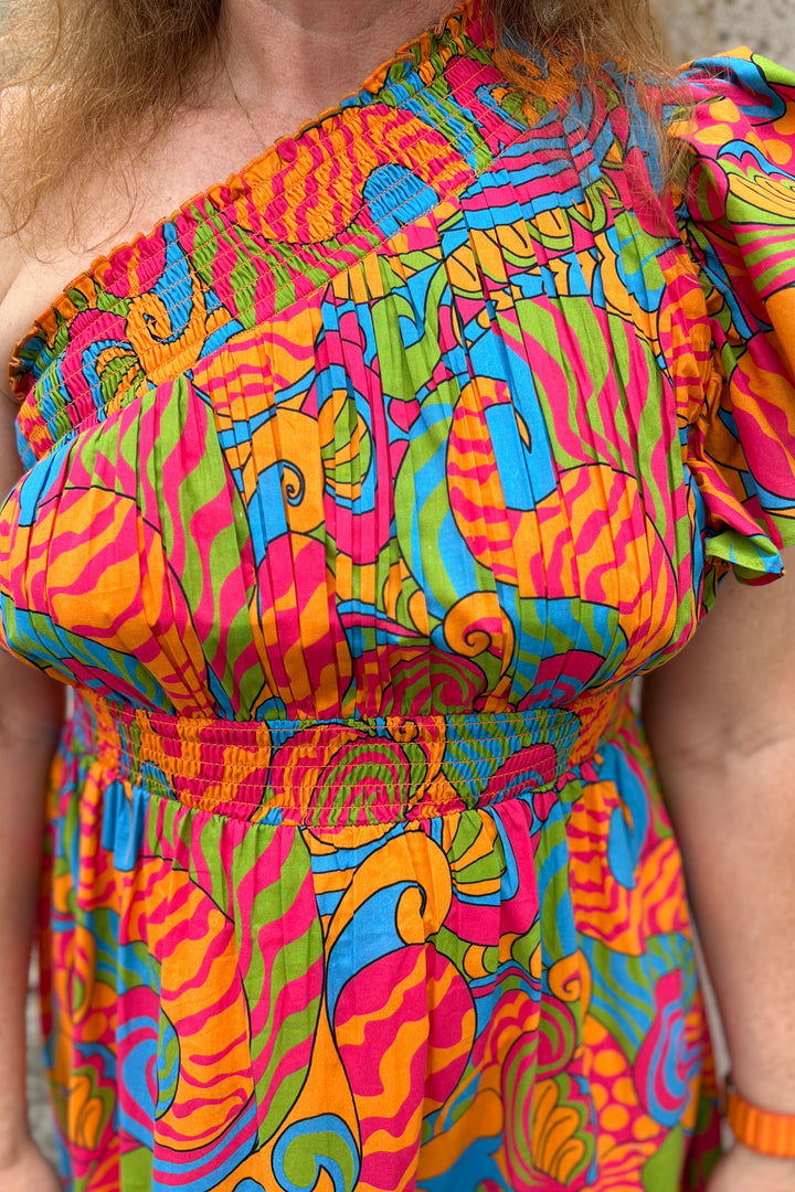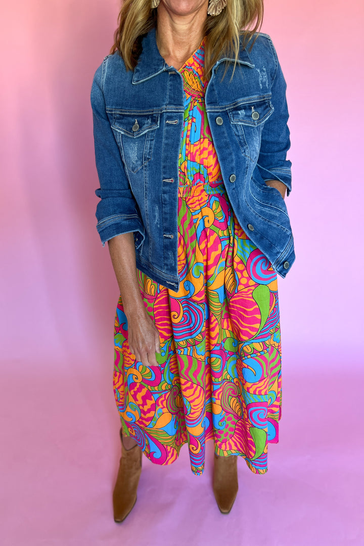 This bright Inlet Beach dress will bring a spark of color into any wardrobe. The coral fusion hue is sure to radiate personality. The loose fit is comfortable and flattering, and perfect for all occasions. TTS. Mary Elizabeth is 5'5" and wearing a medium.
