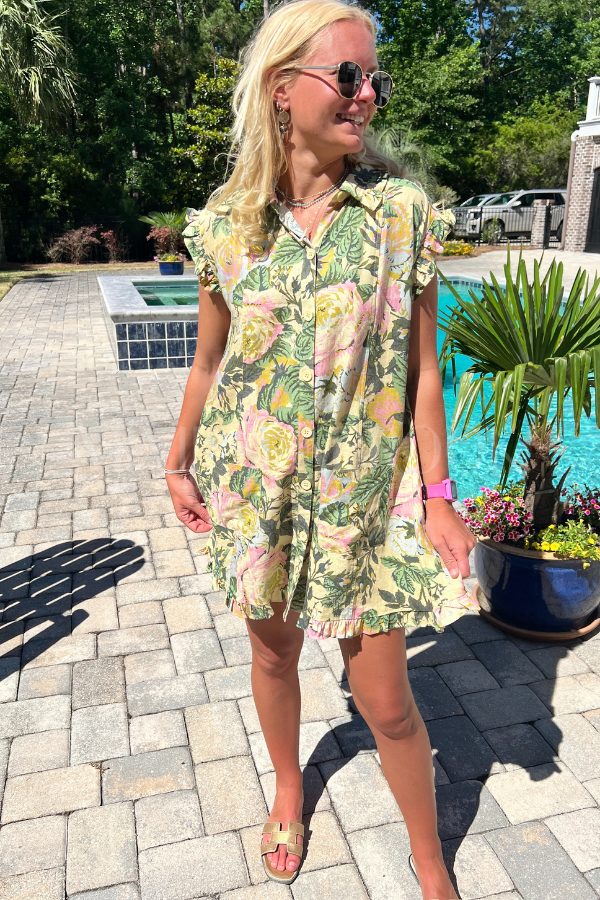Effortlessly elevate your style with the Olive dress. This elegant top features a collared neckline and delicate ruffle detailing, adding a touch of sophisticated charm.