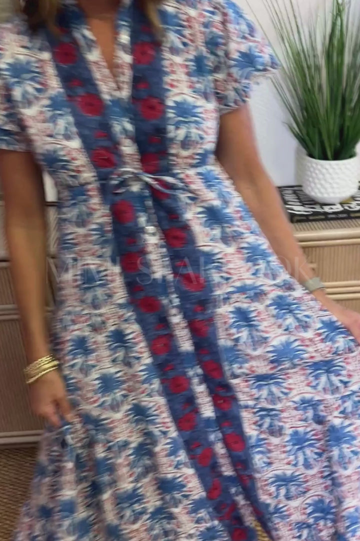 Our Magnolia Flutter Dress was designed after Magnolia Gardens in Charleston. It features a drawstring waist, four-tiered skirts, top-to-bottom contrasting trim, and buttons going upwards from the bottom of the dress to the bust.