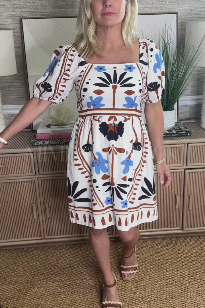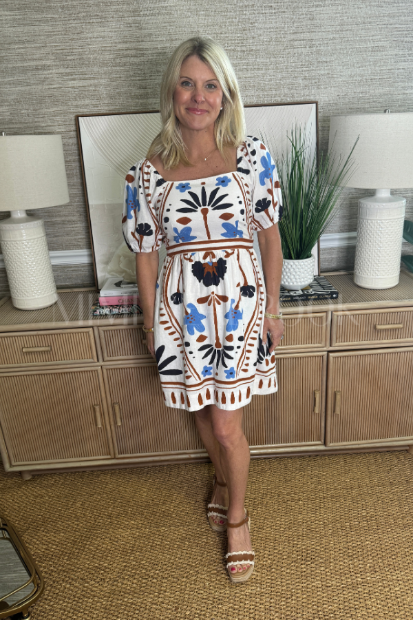 Ethically handmade from 70% cotton 30% linen, the Mariana Mini Dress features flattering square neck line and smocked panels at the back for adjustability. The Mariana has a classic silhouette and a show stopping print you need for your next vacation.
