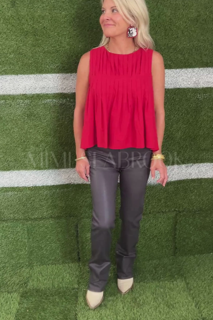This Moreno top features a sophisticated high-low hemline and delicate pleated detailing, offering a refined silhouette. The sleeveless design ensures comfort and ease of movement, while the concealed back zipper provides a seamless finish. Ideal for elevating both casual and dressy ensembles.