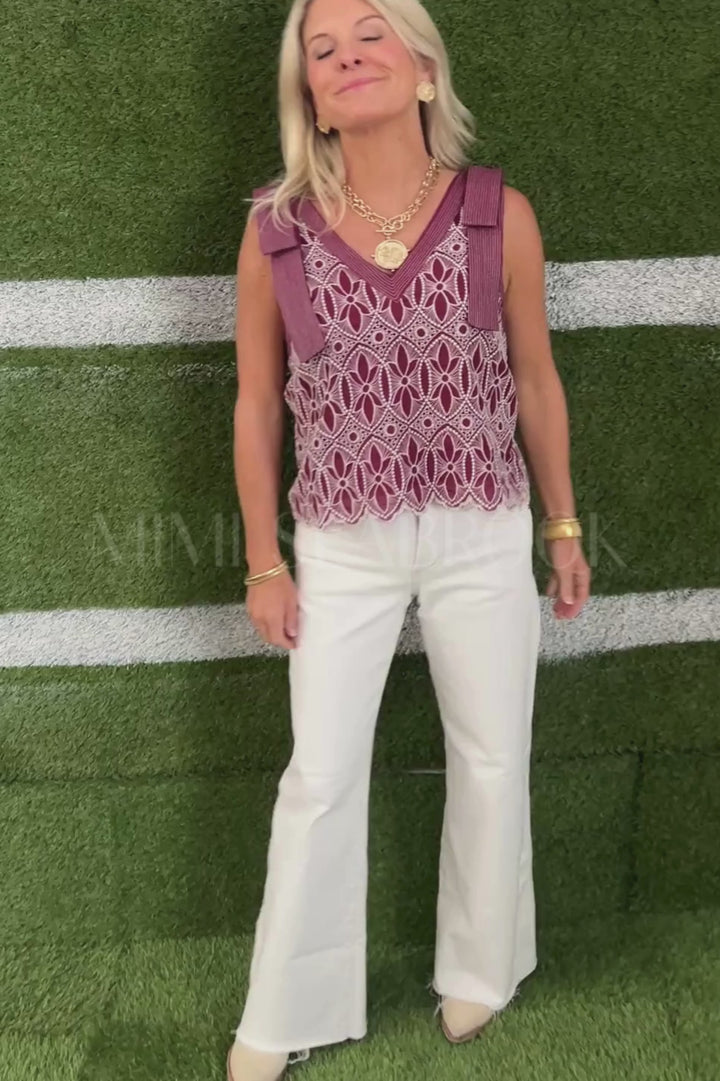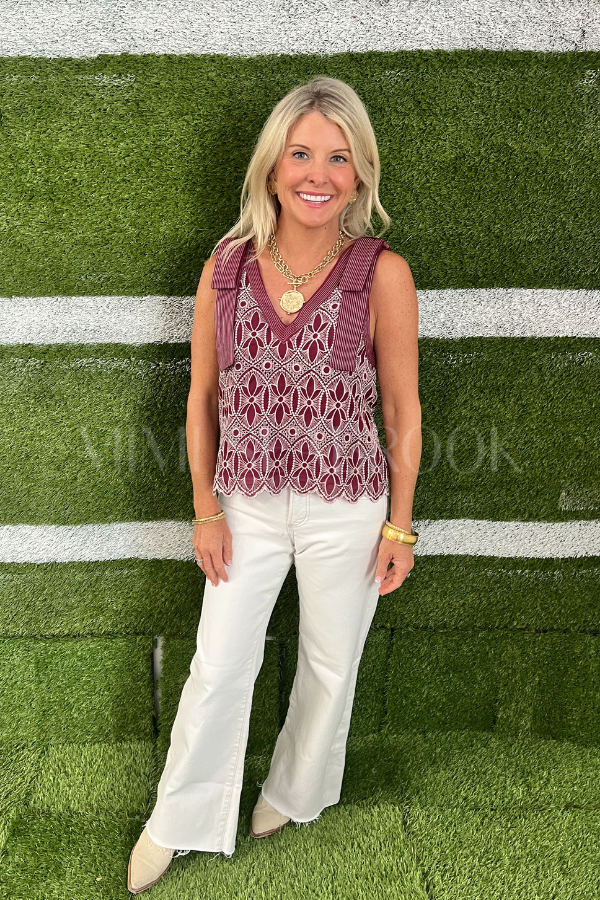 The Nesbit top showcases expert craftsmanship with its delicate floral motif embroidery and a flattering V-neckline. Designed sleeveless for a light, airy feel, it features exposed stitch detail on the bow shoulder straps, adding a refined touch of texture. Fully lined for comfort and quality.