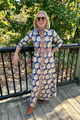 Oliphant's iconic shirt dress gets a refresh in a transitional print perfect for the changing of the seasons. This beautiful design showcases a gorgeous print with golden accents all hand-printed on structured cotton.
