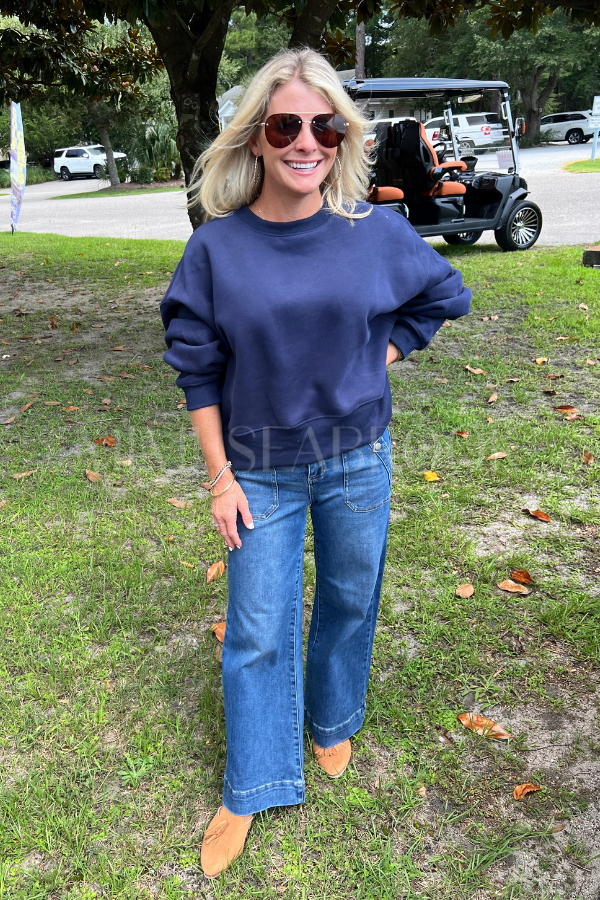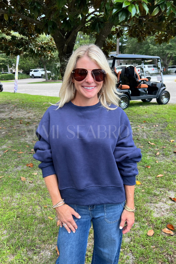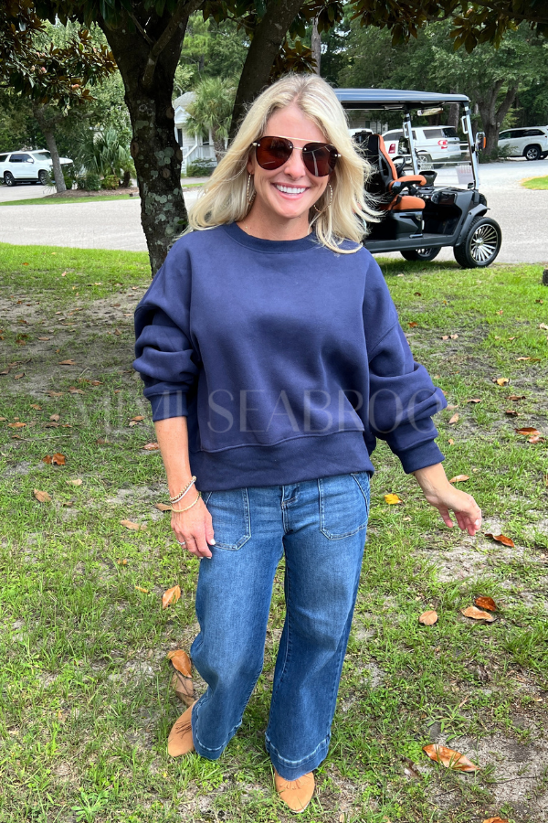 The Veda top features a solid round neck design combined with dropped shoulder seams for a relaxed yet polished silhouette. Crafted for both comfort and style, this sweatshirt offers easy layering possibilities while maintaining a structured look ideal for versatile wear.